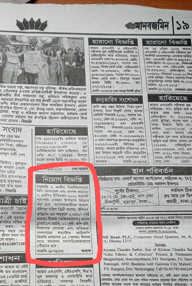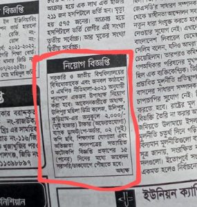 নিয়োগ বিজ্ঞপ্তি:- umdc July 28, 2025 সকল নোটিশ Comments উলিপুর মহিলা ডিগ্রী কলেজে উপাধ্যক্ষ নিয়োগের জন্য আজ ২৮ -০৭-২০২৫ খ্রি. সোমবার “দৈনিক মানবজমিন,” দৈনিক যায় যায় দিন” এবং দৈনিক সকালের কাগজ ( কুড়িগ্রাম থেকে প্রকাশিত)- এ প্রকাশিত হয়েছে। আগ্রহী প্রার্থীদেরকে আবেদন করার জন্য অনুরোধ জানানো যাচ্ছে।